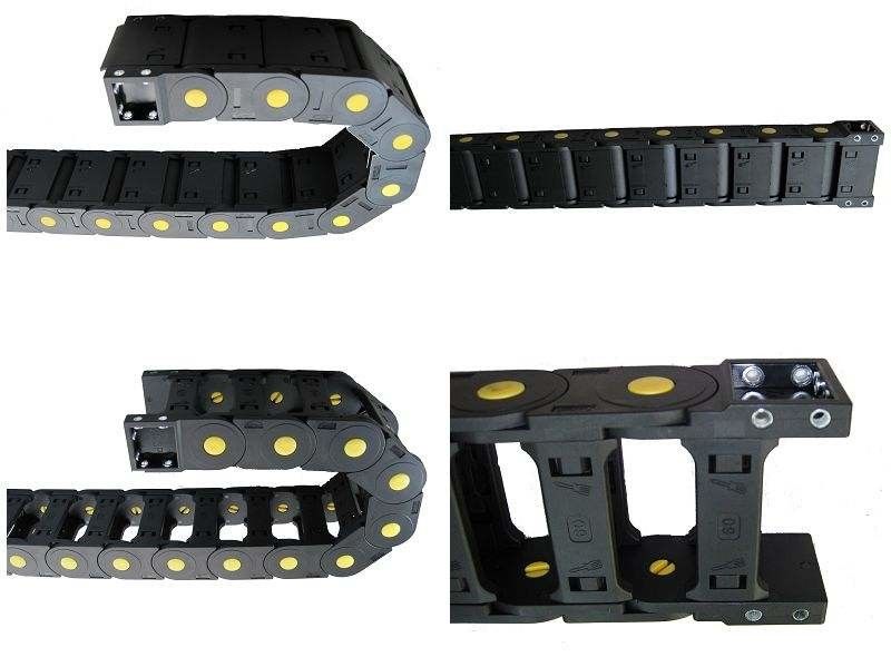 Esta cadena de cable PA66 sobresale como un dispositivo de protección para cables, cables y mangueras de gas, perfectamente 适配 适配 (adaptando) máquinas herramientas CNC, centros de mecanizado, maquinaria automatizada y líneas de producción. También funciona a la perfección con robots, maquinaria de transporte, instrumentos de medición, dispositivos de manejo y otros sistemas de control de accionamiento líquido. Cuando está en uso, se mueve en armonía con las partes móviles del equipo, proporcionando una protección de seguridad confiable y una guía precisa para evitar daños externos a cables/mangueras internas. Más allá de la protección, extiende la vida útil de los cables, cables y mangueras líquidas/gas (reduciendo los costos de reemplazo), elimina la distribución desordenada de cable y desordenado en equipos y organiza componentes perfectamente, mejorando principalmente la estética general de las máquinas.
